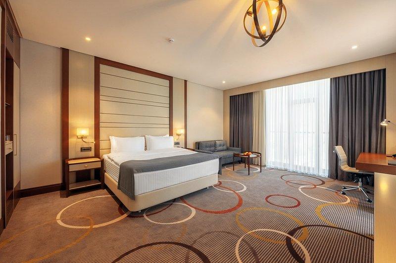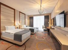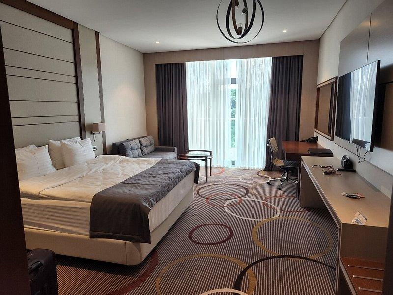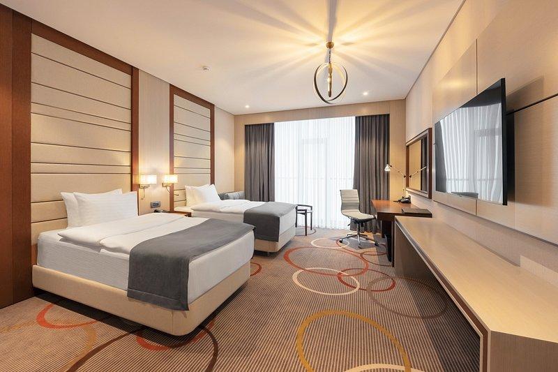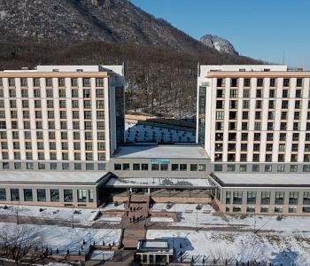 Санаторий занимает благоустроенную закрытую территорию, на которой возвышаются два десятиэтажных корпуса, связанных между собой теплым переходом. Обширный жилой фонд, рассчитанный на единовременное заселение 500 человек, предлагает отдыхающим однокомнатные и двухкомнатные номера разных категорий площадью от 36 до 108 квадратных метров. В каждом номере независимо от категории комфорта есть индивидуальный санузел, кондиционер и необходимая бытовая техника: телевизор, электрочайник, фен.